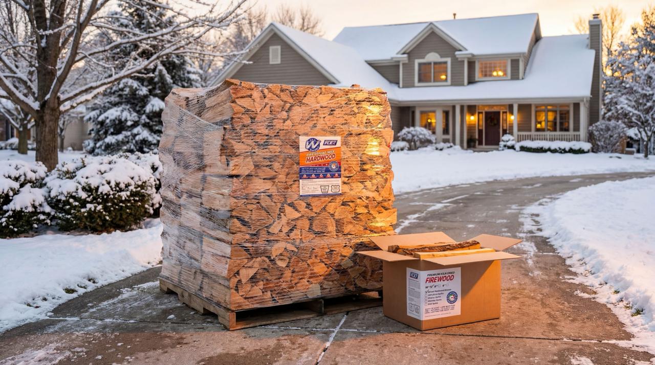 Premium 16″ Kiln-Dried Firewood – ¼ Cord, Neatly Palletized